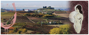 Unser absoluter Favorit jedoch sind seine Gemälde, in der absolut schönen Kombination "Frauen aus Wein", "Donne di Vino", die er nicht mit gewöhnlicher Farbe auf das Papier bringt, sondern mit dem Satz von gereiftem Wein aus den Barrique-Fässern seines Bruders.